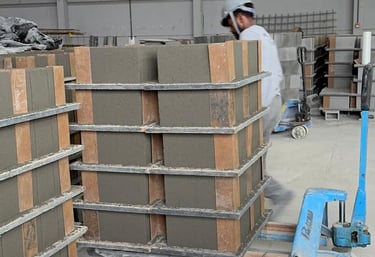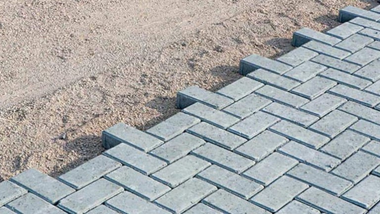 Blocos e pavers de concreto, perfeitos para construção e paisagismo.